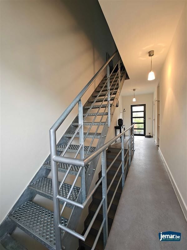 Bij het binnenkomen komt u terecht in een grote inkomhal die u via de vaste trap naar het eerste verdiep leidt.