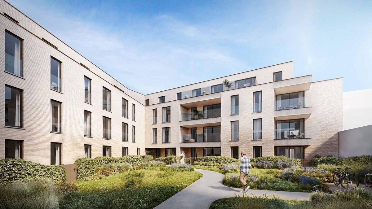 In dit project heb je keuze tussen appartementen met 1, 2 of 3 slaapkamers. De appartementen beschikken steeds over een groot terras. Op het gelijkvloers is er een handelsruimte voorzien. In de grote ondergrondse verdieping bevinden zich de autostaanplaatsen, garageboxen, bergingen en fietsenstalling. Alle bewoners kunnen genieten van een groene binnentuin, een leuke extra voor wie op zoek is naar een aangename woonomgeving.