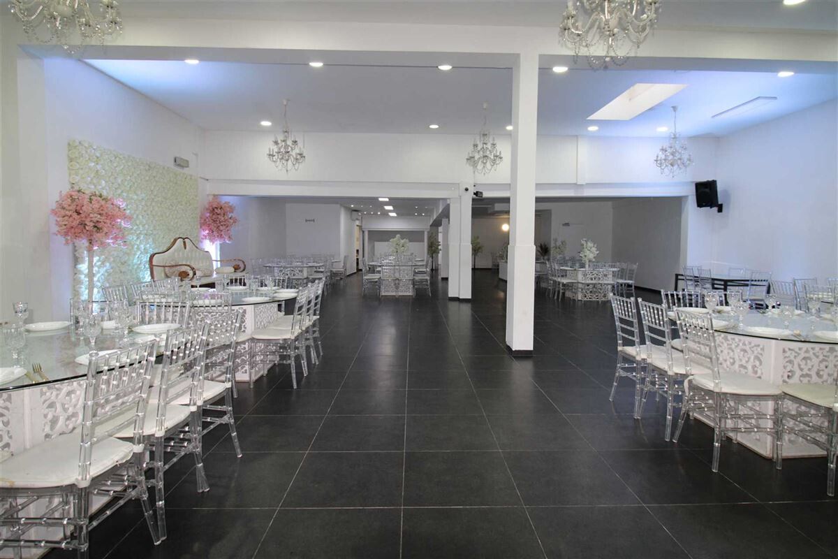 Feestzaal van 500 m² met appartement, gelegen op de Bisschoppenhoflaan, nabij openbaar vervoer en invalswegen. De zaal heeft een capaciteit tot 350 personen en het terras tot 100 personen en is geschikt voor bruiloften, bedrijfsevenementen, verjaardagsfeesten, etc. Indeling: 2 polyvalente zalen, professionele keuken, afzonderlijke wc's ( dames en heren) en een groot terras. Het appartement heeft een oppervlakte van 165 m² en bestaat uit een ruime leefruimte met open keuken, 3 slaapkamers, badkamer en terras. Adresse: Bisschoppenhoflaan 608 2100 Deurne
