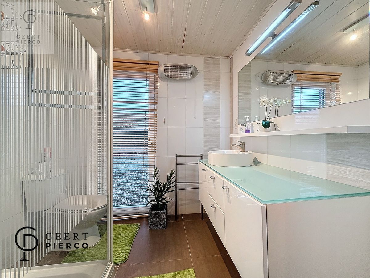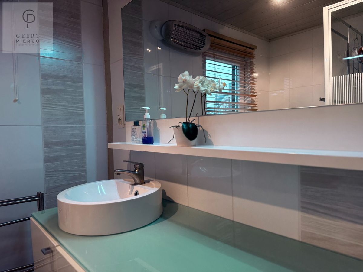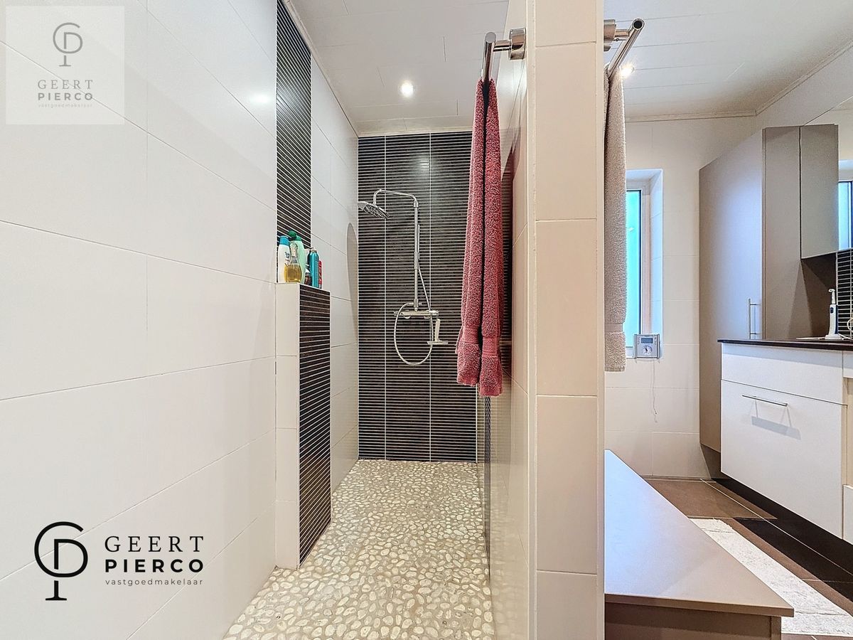 De volledige vernieuwde badkamer met knappe regendouche en verder een handige berging met toegang naar de tuin en natuurlijk de volledig ingerichte studio met slaapkamer, badkamer met douche en leefruimte met keuken. Ook hier is een aparte ingang.