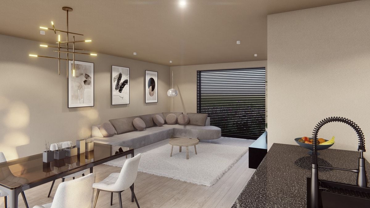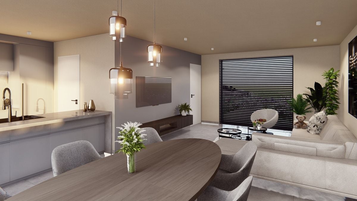 In Zonhoven vinden we deze stijlvolle nieuwbouwwoning in opbouw terug met een oppervlakte van 144m² op een perceel van bijna 5a. Op het gelijkvloers vinden we een berging, ruime leefruimte met veel lichtinval en gastentoilet terug. Op de eerste verdieping zijn er 3 slaapkamers, dressing, berging en badkamer aanwezig. De woning is voorzien van alle moderne technieken zoals zonnepanelen, vloerverwarming, ventilatie en warmtepomp. De woning wordt instapklaar afgewerkt volgens het lastenboek, met ruime budgetten voor keuken, vloeren en badkamer om naar eigen smaak in te richten.
