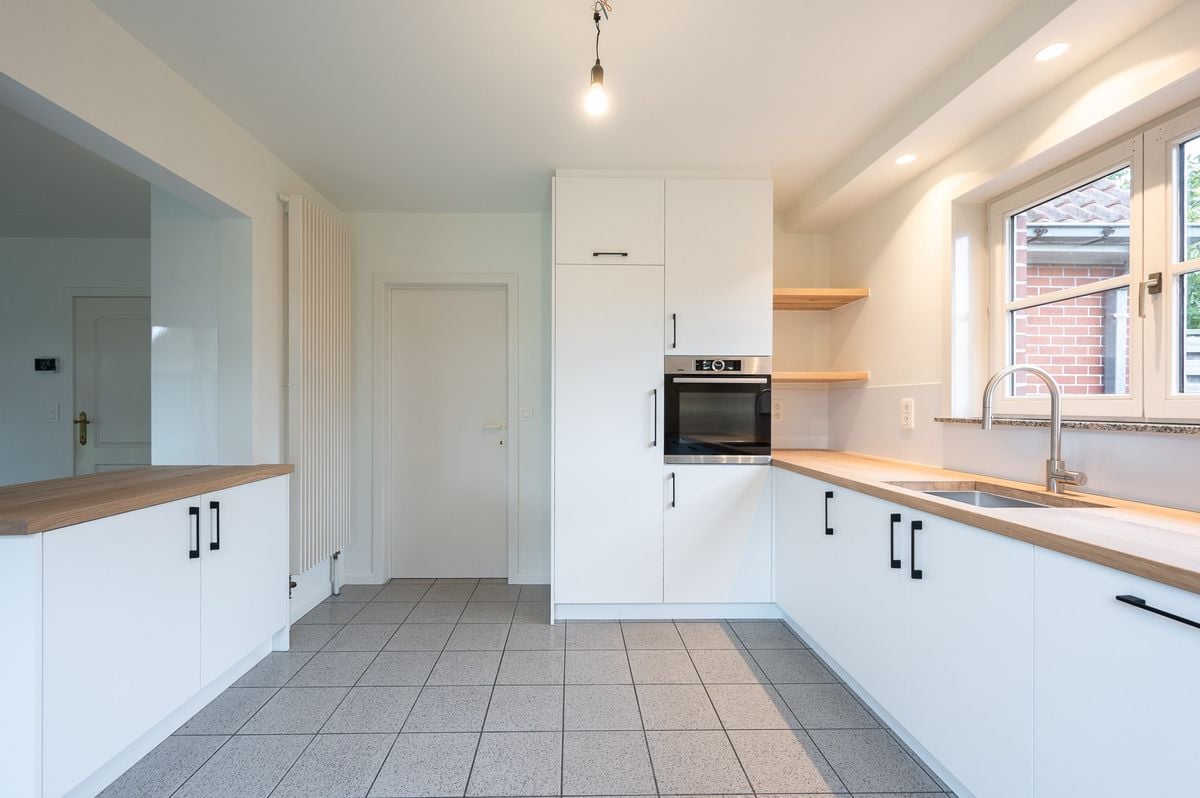 La maison dispose d’un séjour lumineux avec vue et accès à la terrasse ensoleillée et au joli jardin. La cuisine, pratique et récemment rénovée, donne accès au garage équipé de raccordements pour machine à laver et sèche-linge.
