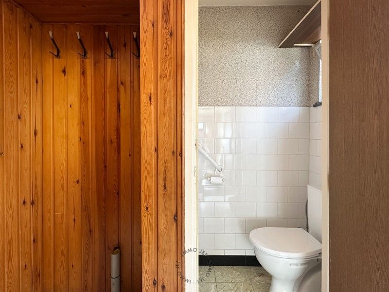 De inkomhal is voorzien van handige opbergruimte voor jassen en schoenen, én een gastentoilet. Van daaruit wandel je door naar de ruime L-vormige leefruimte, waar een karaktervolle gashaard – naast de centrale verwarming op aardgas – voor een warme sfeer zorgt.