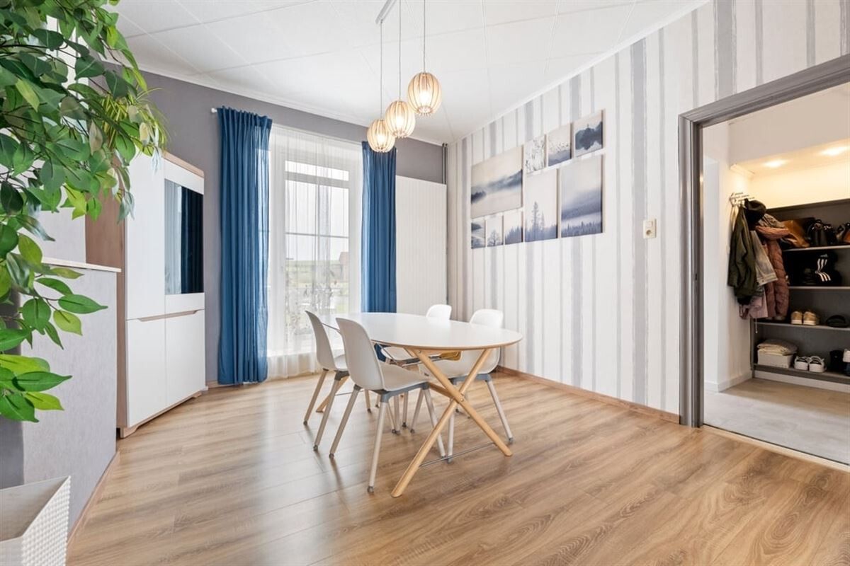 We betreden de woning via de inkomhal die ons meteen toegang verleent tot de knusse leefruimte. Deze is hier ingedeeld in een gezellige living en een eethoek waar men heerlijk kan tafelen! De leefruimte vormt hier het kloppend hart van de woonst. Aansluitend aan de leefruimte vinden we De knusse keuken. Deze is uitgerust met aanbouwkasten, een spoelbak, een inductie kookplaat, vaatwasser, oven, ... kortom alle nodige toestellen voor het bereiden van een heerlijke maaltijd!