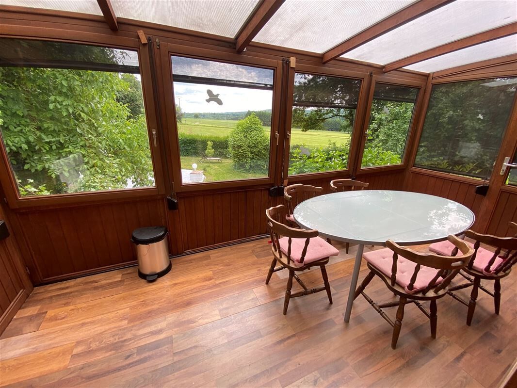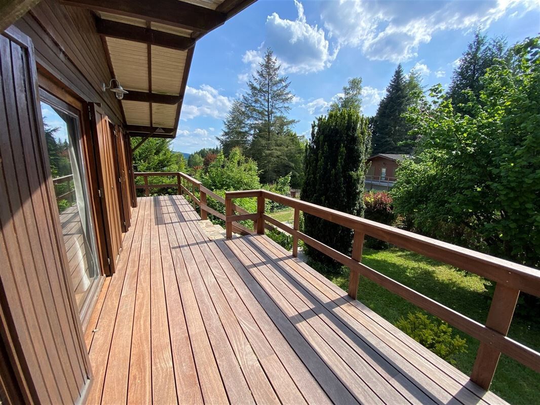 Il est composé d'un salon (avec poêle à bois), salle à manger, cuisine, véranda et de 2 chambres et une salle de bain au +1 et d'une chambre avec salle de bain privative ainsi que d'un hall de nuit et un garage au - 1. Les deux niveaux sont reliés via un escalier. L'accès au chalet peut se faire via le -1 (hall de nuit/vestiaire) comme par le +1. Ce bien offre un potentiel exceptionnel pour créer la seconde résidence de vos rêves. Sa construction surélevée, en bois, avec une terrasse spacieuse, promet des moments de détente en plein air, tout en admirant le jardin soigneusement entretenu avec de nombreux arbres fruitiers. La vue imprenable sur la campagne environnante garantit sérénité et dépaysement au quotidien.