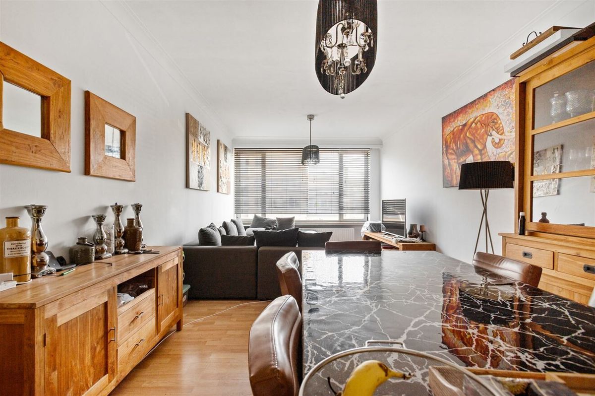 U betreedt het appartement, gelegen op de derde verdieping, via de inkomhal. Deze geeft toegang tot alle ruimtes in het appartement. De ruime leefruimte met grote raampartijen, beschikt over veel natuurlijke lichtinval. De keuken is voorzien van voldoende kastruimte. Aansluitend aan de keuken bevindt zich een ruime berging met aansluiting voor een wasmachine en droogkast, wat zorgt voor extra praktisch comfort. Aan de achterzijde van het appartement bevinden zich de twee ruime slaapkamers. De badkamer is uitgerust met een douche en een wastafel. Daarnaast beschikt het appartement over een ruime kelderberging en is er een gemeenschappelijke fietsenstalling voorzien.