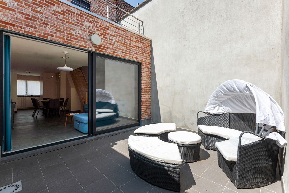 Zowel gelijkvloers als aan de eerste verdieping vinden we een fijn terras met perfecte oriëntatie. Dankzij het grote schuifraam achteraan is er trouwens ook binnen in de woning een heel mooie lichtinval.