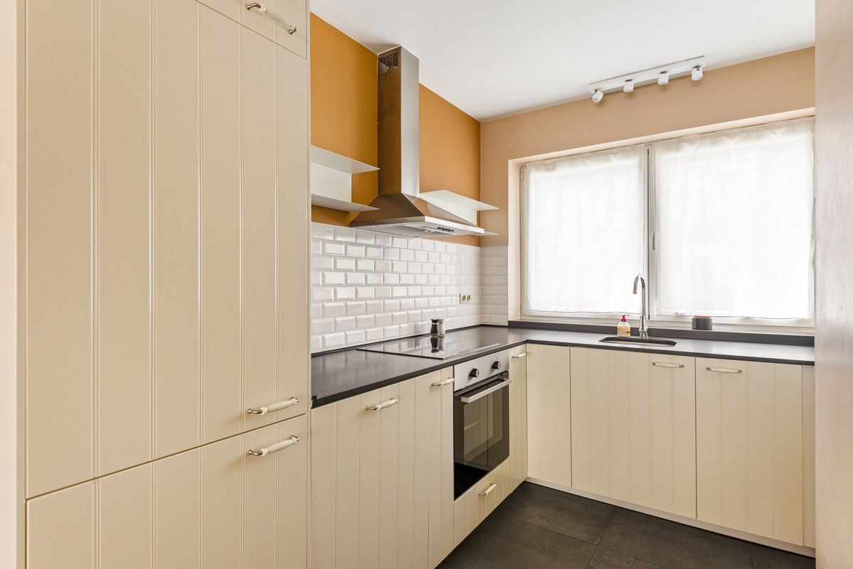 Op de gelijkvloerse verdieping komen we langs de hal (met gastentoilet en vestiaire) in de woonkamer. Aansluitend de volledig uitgeruste open keuken.