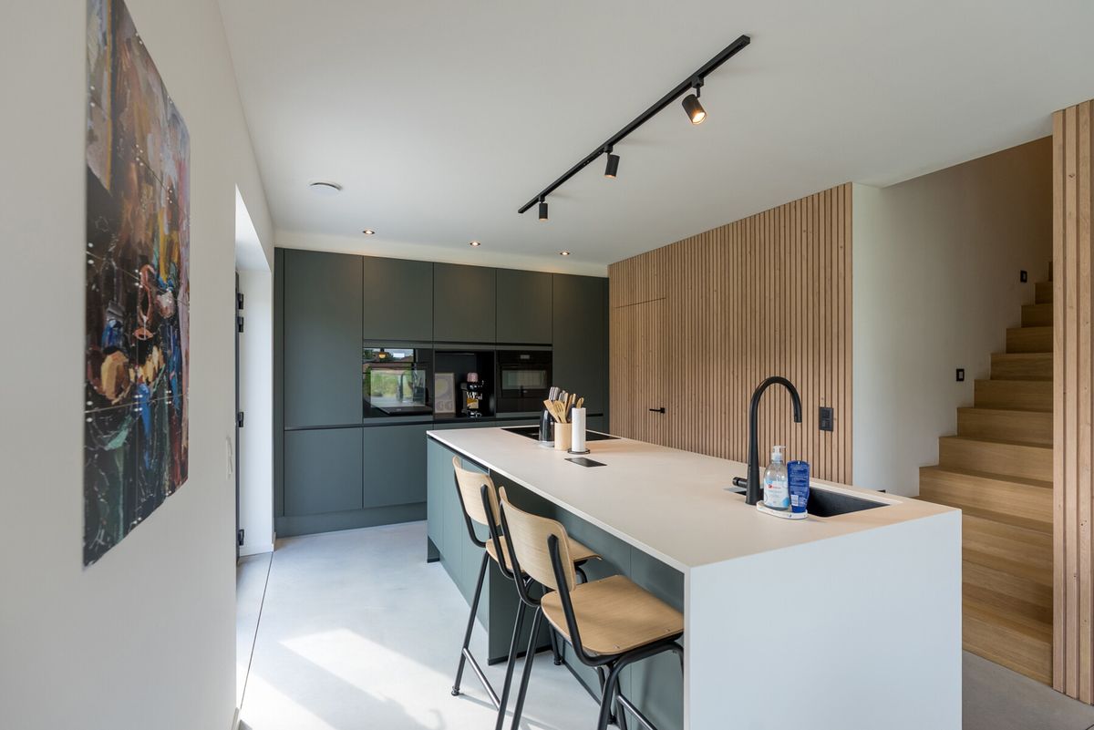 Deze recente halfopen woning, gebouwd in 2023, is zeer energiezuinig (E-peil -16) en ingericht met kwalitatieve en stijlvolle materialen. Zo werd er op het gelijkvloers gekozen voor een gietvloer in combinatie met een zwarte keuken, een mooie houten wandafwerking en een volledig afgewerkte badkamer met enkele mooie accenten.
