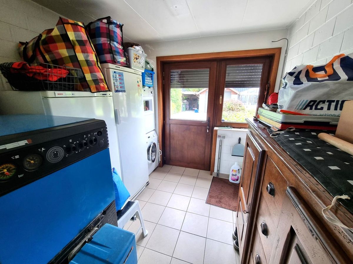 Via de inkomhal met gastentoilet krijgt u toegang tot de woonkamer met open keuken. Beiden hebben een mooi uitzicht op de tuin met groot overdekt terras. Ideaal voor heerlijke zomerse avonden. Via een nachthal wordt toegang verleend aan 2 ruime slaapkamers en een badkamer voorzien van douche, 2de toilet en lavabomeubel. Volledig gelijkvloers wonen is hier perfect mogelijk. Eveneens geniet deze woning een inpandige garage voorzien van automatische poort en een wasplaats.